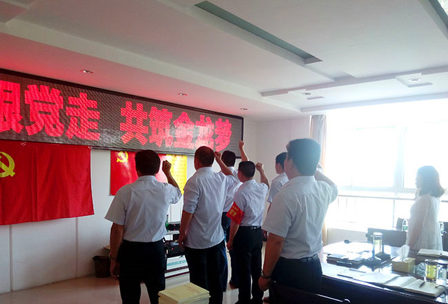 在這次黨員民主生活會(huì)上,黨委書(shū)記饒金才同志首先宣讀了鎮(zhèn)委接受5名同志為中共預(yù)備黨員的決議,并帶領(lǐng)全體黨員面對(duì)黨旗,舉起右手,緊握拳頭,重溫了入黨誓詞:“為共產(chǎn)主義奮斗終身,隨時(shí)準(zhǔn)備為黨和人民犧牲一切,永不叛黨”,嘹亮的聲音回響在整個(gè)大樓。